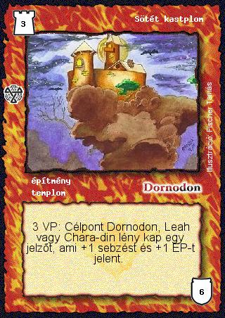 Kiadás: Isteni szövetség, Túlélők Földje Gyakoriság: nem gyakori Lapszín (isten): Dornodon Típus: építmény Altípus: templom Szöveg: 3 VP: Célpont Dornodon, Leah vagy Chara-din lény kap egy jelzőt, ami +1 sebzést és +1 ÉP-t jelent. Illusztráció: Fischer Tamás