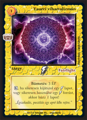 Van játékban 2 Yaurri vihartalizmán. Az egyiket leszedik, és kisül a Büntetése. Kisül a másik talizmánnak a képessége amiatt, hogy villámsebzést használtam. A büntetés ugyan automatikus hatás, de szövegben a „használ” ige önmagában nem definiálja az aktivizálást igénylő hatásokat, ahogy azt a Zilak-din főkancellárnál is leírtuk. Ha csak ilyenekre működne, akkor az külön rá lenne írva, ld. pl. A sors fintora (új).