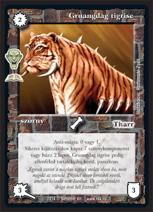 Gruangdag tigrise (8): Első blikkre nem tűnik túl jónak a lap. Termel pár csontot, de az ellenfél kap egy lényt. Azonban olyan pakliban, ahol használjuk a csontot (pl. tárgy vagy zanszilánk) meglepően jó tud lenni. A tárgy paklik pl. gyakran kezdenek úgy, hogy 2. körben kincseznek egyet: 1 lapért és 1 VP-ért kapnak 2 csontot. Igaz, hogy a tigris eggyel drágább, de cserébe antimágiázik (és csak akkor, amikor az kell), valamint hét csontot ad. Lépéselőnyös pakliban különösen kellemes, ahol VP-t nem kaphatok a Lépéselőny miatt, de a tigrissel első körben antimágiázok vele egyet és kapok hét csontot, ami átszámítható akár 7 VP-nek is, ha zanszilánjaink, vagy tárgyaink vannak. Az ellenfélnek adott lény pedig nem sokat számít, ha mi első körös pörgést tudunk beindítani.